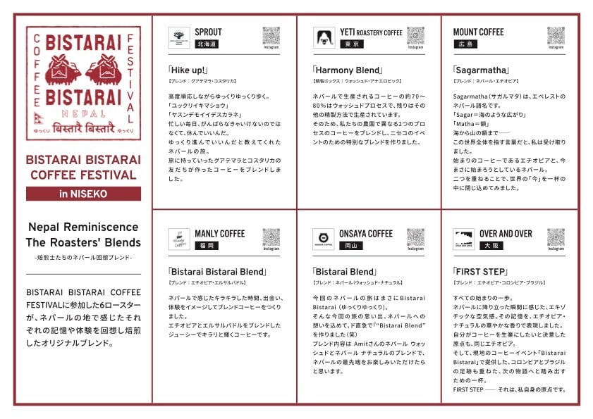 全国各地から集まった6店舗が、「ネパールの旅」をテーマに作ったコーヒーを20gずつ詰め合わせたスペシャルセット